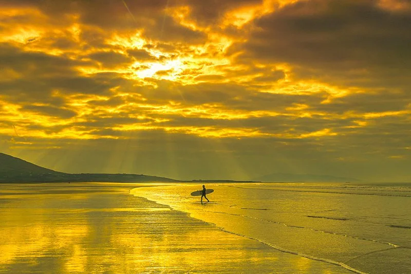 When the day ends at Carrowniskey Beach, it doesn't just set. It performs. Golden hour becomes golden hours, and every evening feels like a private screening of nature's best work. This is where surfers come to catch their last wave of the day and where everyone else comes to remember why sunsets were invented.